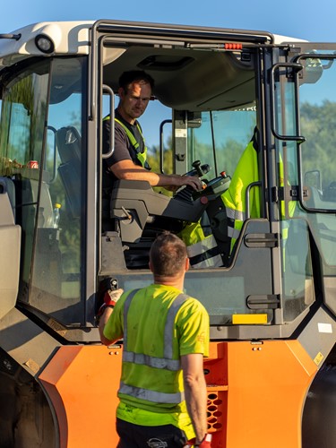 The climate-friendly layer was paved at full road length by the use of two pavers driving in tandem, one in front of the other. To ensure that no unnecessary stops were needed when paving, a feeder was attached to the pavers – a requirement by the Danish Road Directorate. The feeder ensured that both pavers were continuously fed hot-mixed asphalt from the idle trucks.