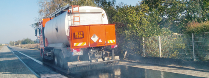For the protection of road surfaces, MOT uses bonding agents in the form of bitumen emulsions and hot bonding agents. This renders the laying of surface dressing possible which meet the most stringent requirements and which are also financially attractive.